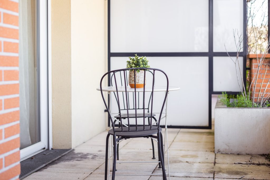 Il dispose également d’un balcon de près de 10 m², avec jardinières (ce qui rend l’ensemble de la copropriété très végétalisée et les extérieurs à discrétion), sans aucun vis-à-vis.
